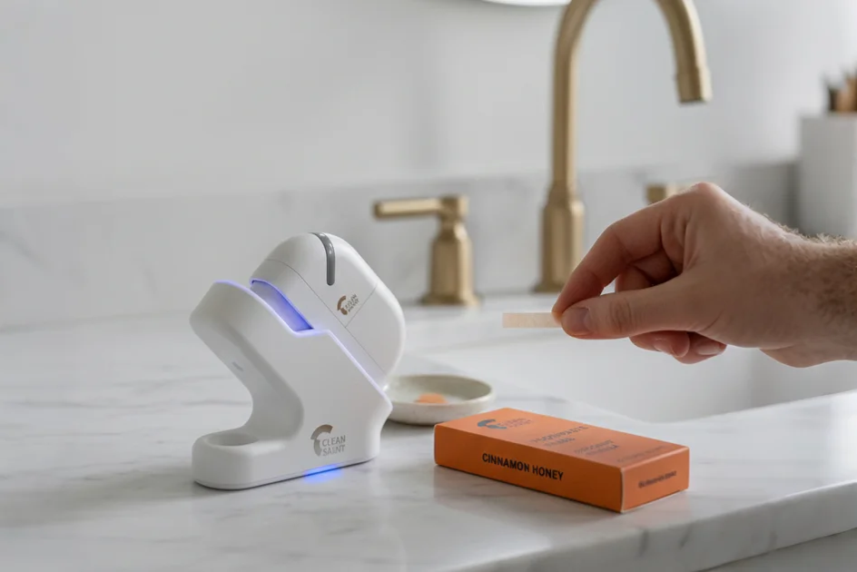 At Clean Saint, we’re revolutionizing oral care with ourActive Cellular Emulsion (A.C.E.) Technology. Our products, including innovative toothpaste films and smart dispensers, provide deeper, more effective care than traditional toothpaste. Designed to strengthen enamel, soothe gums, and fight plaque at the root, Clean Saint ensures your smile stays healthy and bright. Join us on our journey towards a healthier, more sustainable future of oral hygiene.